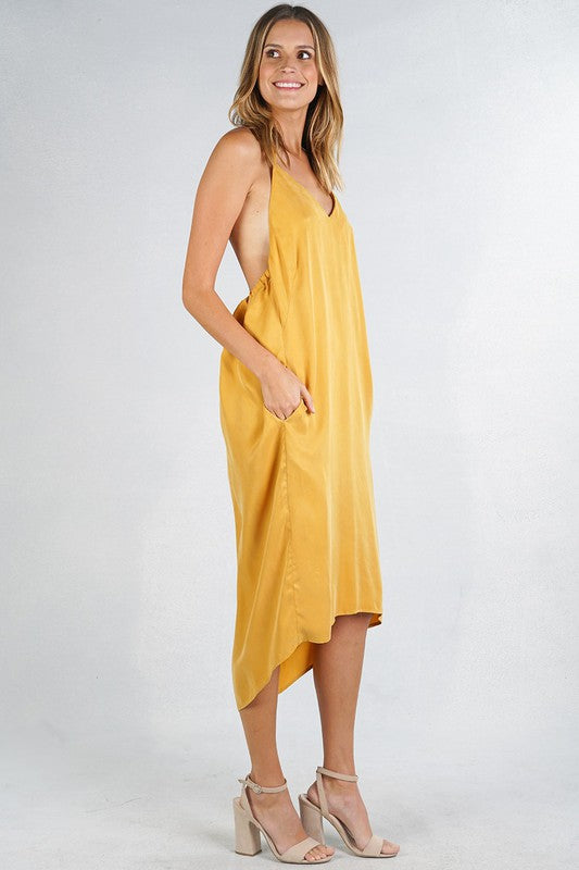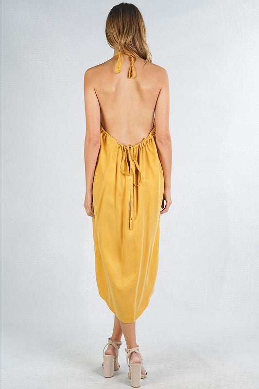 Brighten your wardrobe with the Celine Halter Dress, its halter neckline elegantly frames your shoulders, while the open back adds a touch of daring sophistication.