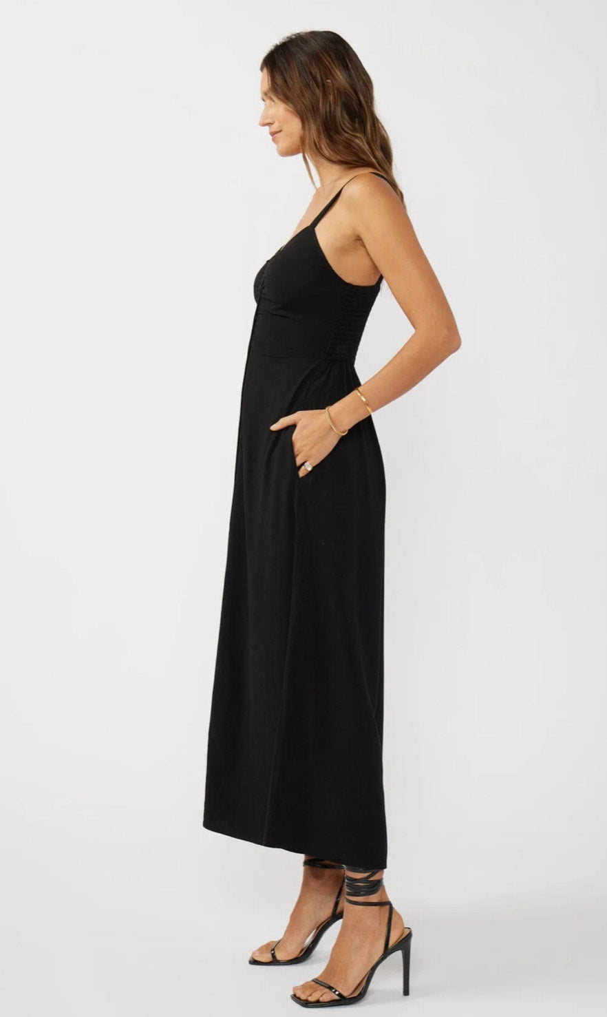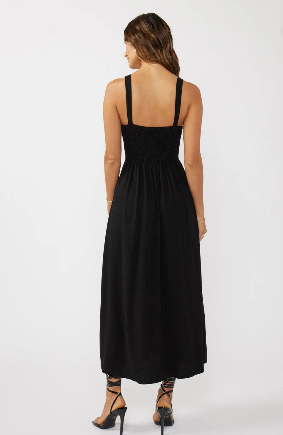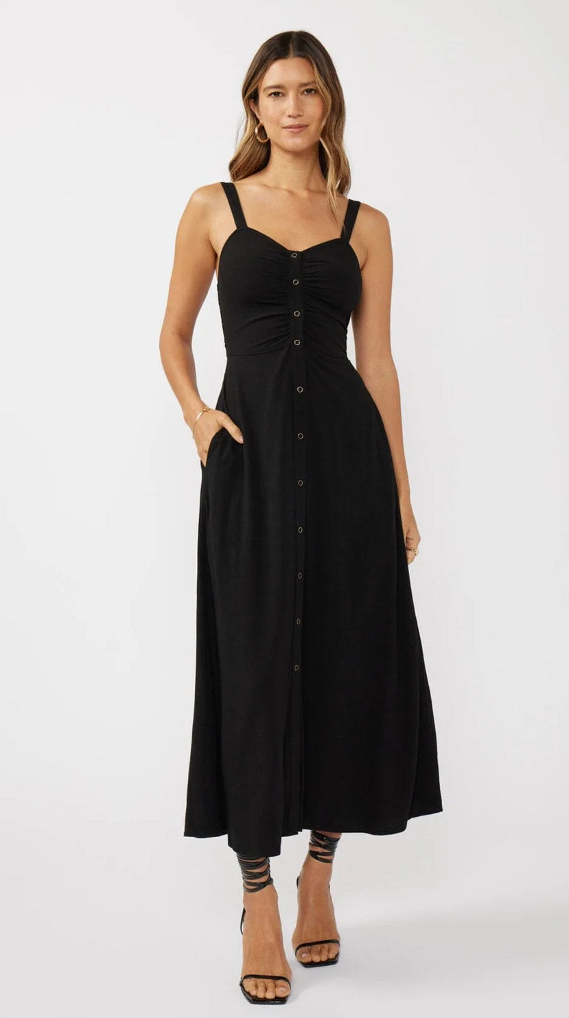 Elevate your wardrobe with the Cheri Maxi Dress, featuring elegant detailing and delicate buttons that add a refined touch.