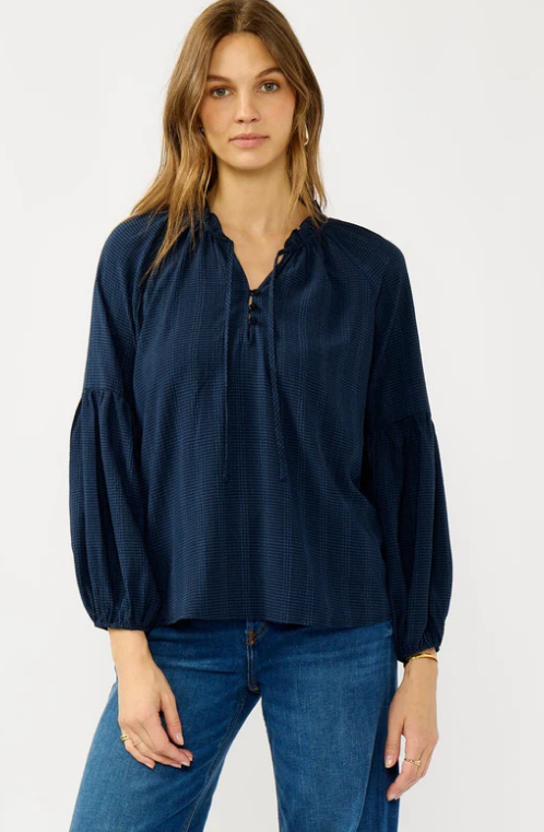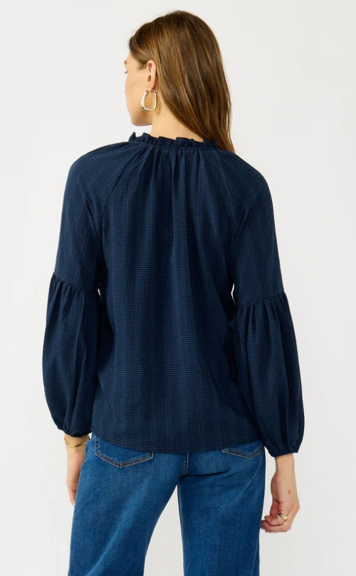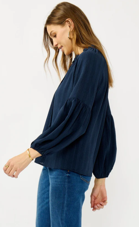 Elevate your wardrobe with the Darcy Blouse, featuring elegant balloon sleeves in a deep midnight blue. Its rich color and unique sleeve detail add a sophisticated touch to any outfit.