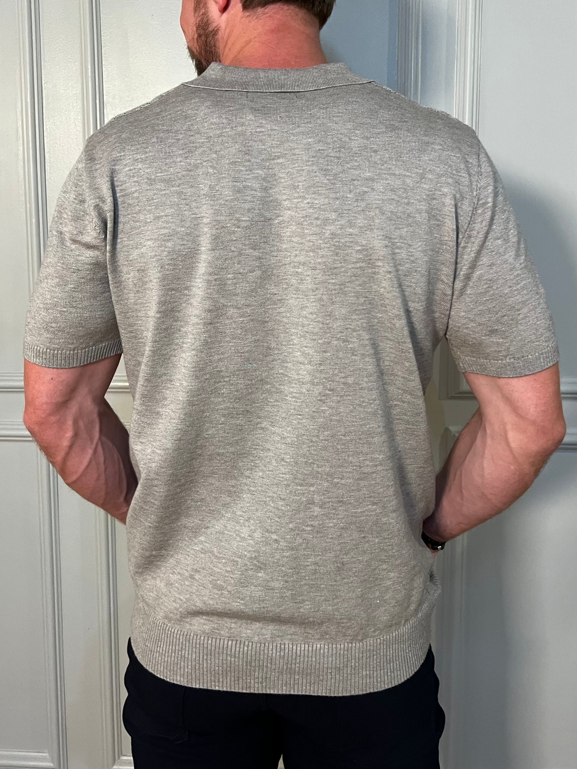 The Frank Knit Polo delivers timeless style with its sophisticated grey pattern, the refined pattern adds visual interest while the neutral grey palette pairs effortlessly with any bottoms in your collection.