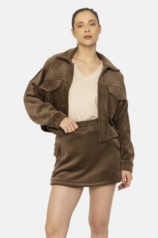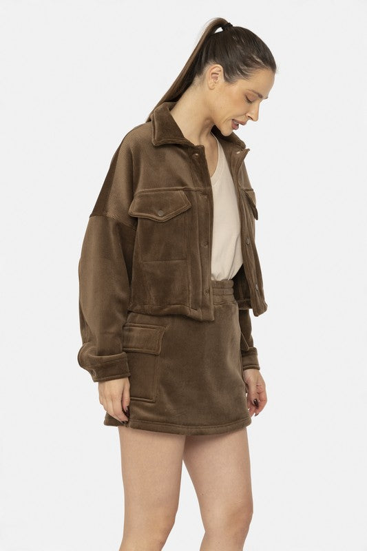 Elevate your style with the Madison Brown Corduroy Jacket. Its cropped design offers a modern, flattering fit, while the warm brown hue adds timeless versatility to any wardrobe.