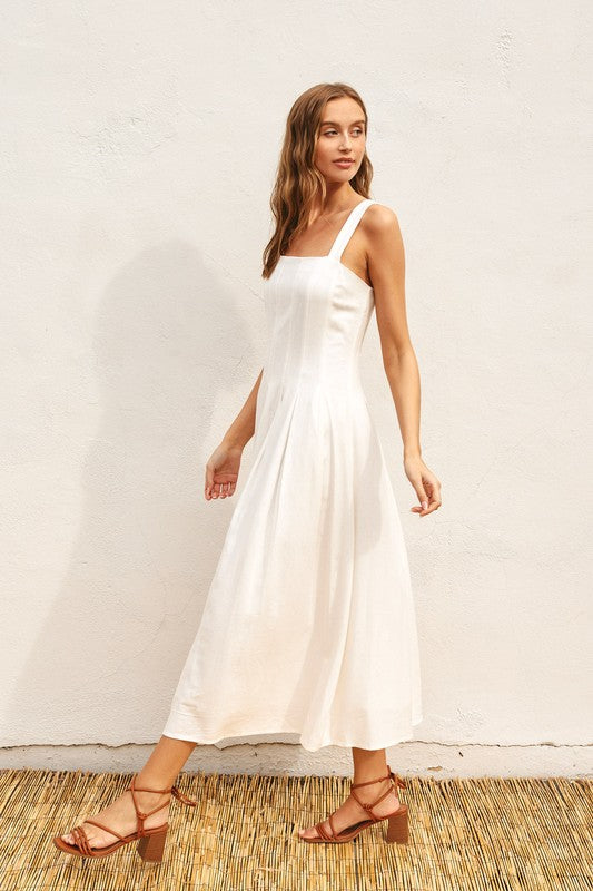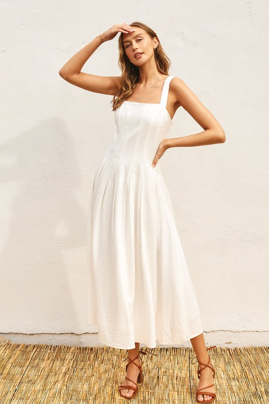 Elevate your style with the Monroe Maxi Dress, featuring elegant white fabric and intricate corset detailing that flatters your silhouette.